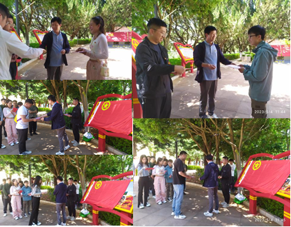 随后,团总支在园内举行了超龄离团仪式,仪式由团总支书记毕锐菁主持。全体团员高举右手,紧握右拳,在朱泽坤同志的带领下重温入团誓词。