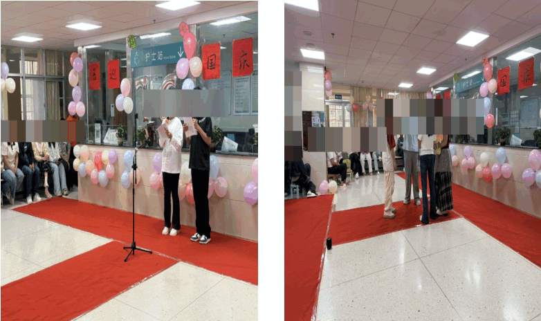活动筹备之初,科室医护人员便决定将主导权交到孩子们手中。在朱蕾老师的引导下,孩子们自发组成活动策划小组,围绕“家国团圆”主题展开热烈讨论。“我想唱我最喜欢的歌!”一位八岁的小患者兴奋地提议。另一位年长些的患者则建议增加游戏互动环节:“可以让台下更多的小朋友跟我们一起玩游戏,猜谜语......。”孩子们的想法既纯真又饱含感情,他们从童真的视角出发,将爱国情怀与传统文化巧妙融合。最终确定的方案包含歌唱、舞蹈、游戏互动三大板块,每个环节都凝聚着小患者们的智慧与心血。最触动人心的画面是大孩子主动帮助小孩子,行动便利的孩子协助行动不便的孩子,使科室上下洋溢着互助友爱的氛围。