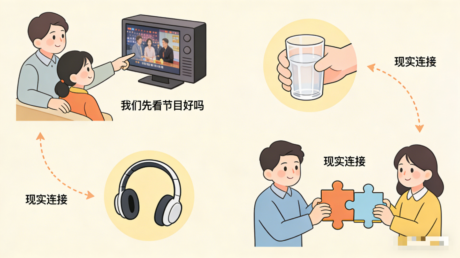 · 或者提供一些简单的、需要集中注意力的任务:“你能帮我递一下那杯水吗?”“我们一起听听这首歌吧。”