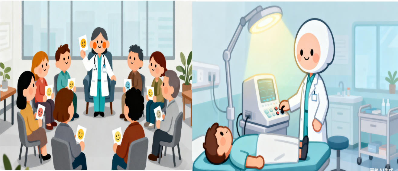 物理治疗:改良电休克治疗(MECT): 这是目前非常安全、高效的治疗方法,尤其对于严重抑郁、自杀风险高、拒食拒药的患者效果显著。治疗会在全麻下进行,患者毫无痛苦,就像睡了一觉。它能快速缓解严重症状,为后续治疗赢得时间。它和影视作品中可怕的“电击”场景完全不是一回事。