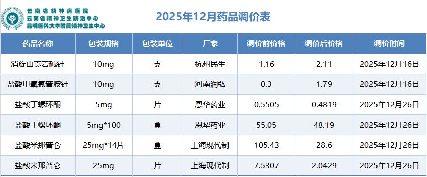 2025年12月药品调价表