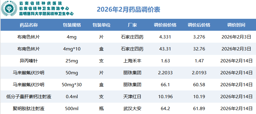 2026年2月药品调价表