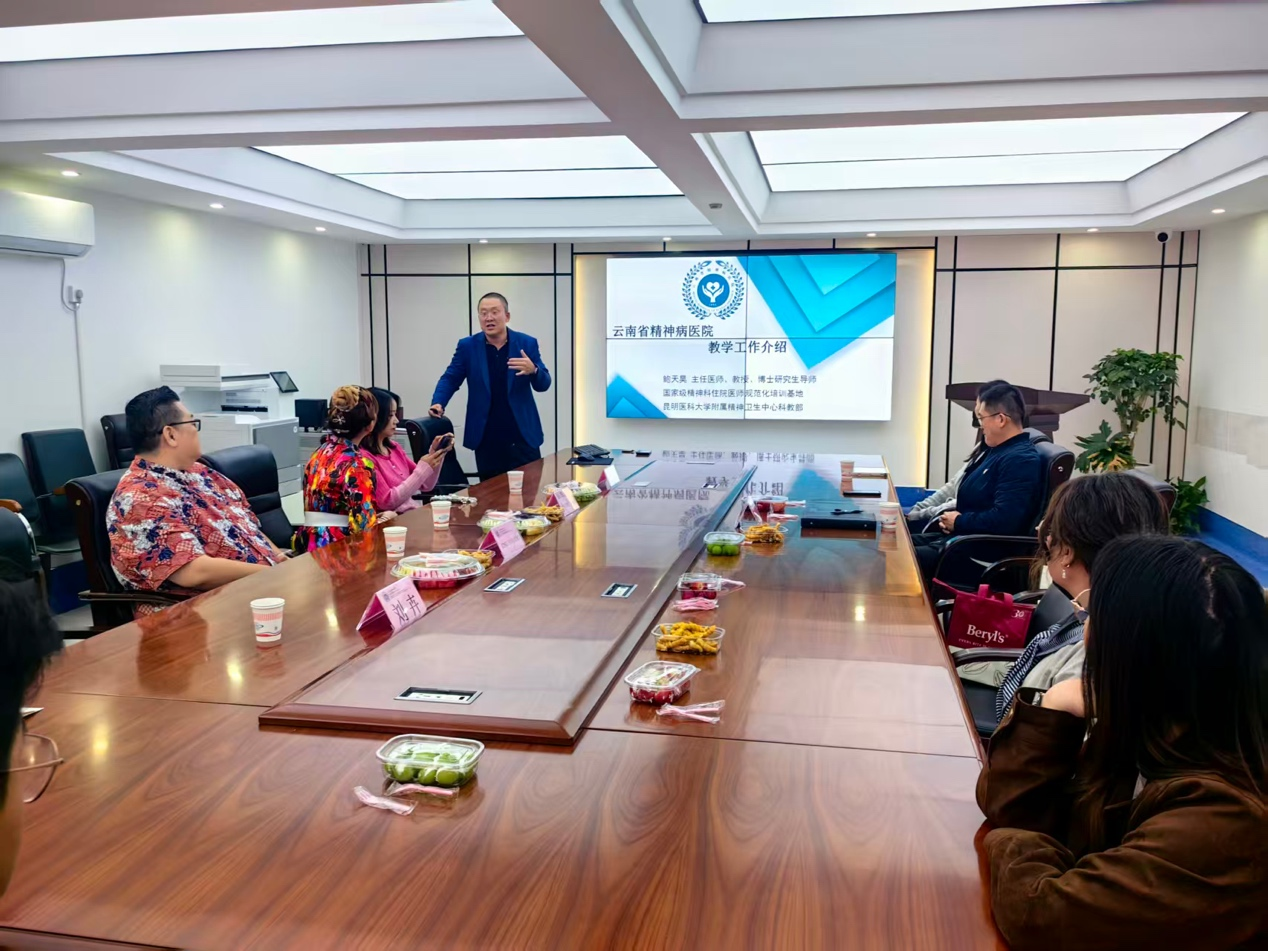 座谈会上,医院科教部主任鲍天昊教授对医院总体情况进行了介绍,包括医院目前学科布局、科研平台建设、研究团队现状、国际合作基础以及研究生和住培医师培养体系等。简要介绍了我院青少年精神卫生特色门诊和线上互联网医院的运行模式与服务成效。随后,Ling King Hwa 教授与 Cheah Pike See 教授介绍了马来西亚布特拉大学的整体办学情况、学校组织架构以及医学与健康科学领域的学科设置,并重点分享了其在精神卫生研究、跨学科创新平台建设及未来发展规划等方面的战略布局。